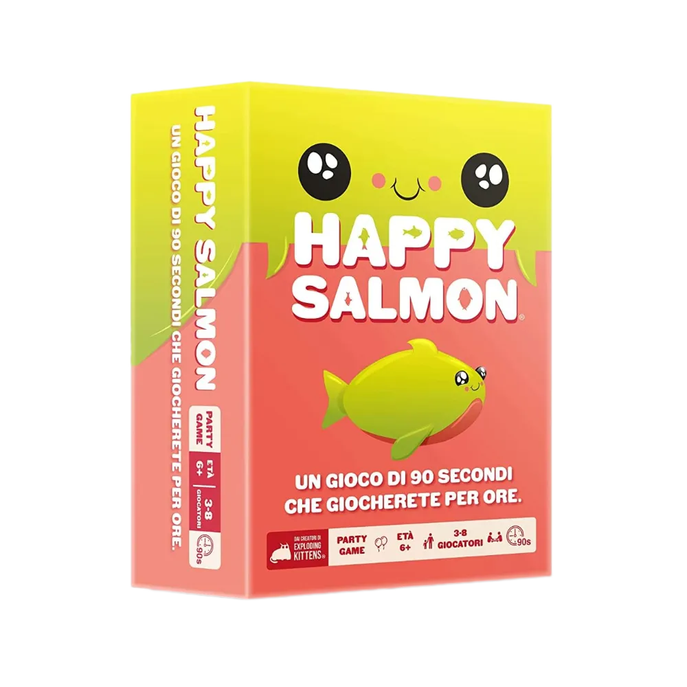 Happy Salmon je brza, glasna i energična porodična društvena igra koja će vas natjerati da skačete, mahate rukama i smejete se kao nikad pre! Jednostavna pravila i trenutačna akcija čine je idealnim izborom za porodične večeri, druženja sa prijateljima ili bilo koju priliku kada želite da zabava počne odmah.