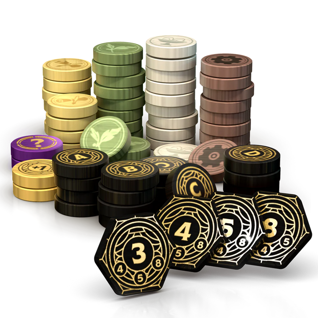 Ovih 60 drvenih žetona nisu samo obična komponenta – oni su ozbiljno unapređenje celokupnog doživljaja igre. Svaki žeton je izrađen od kvalitetnog drveta, u pažljivo odabranim bojama koje odmah privlače pažnju i prave savršen kontrast na stolu. Detaljna štampa na obe strane daje im premijum izgled kakav se retko viđa u standardnim izdanjima.